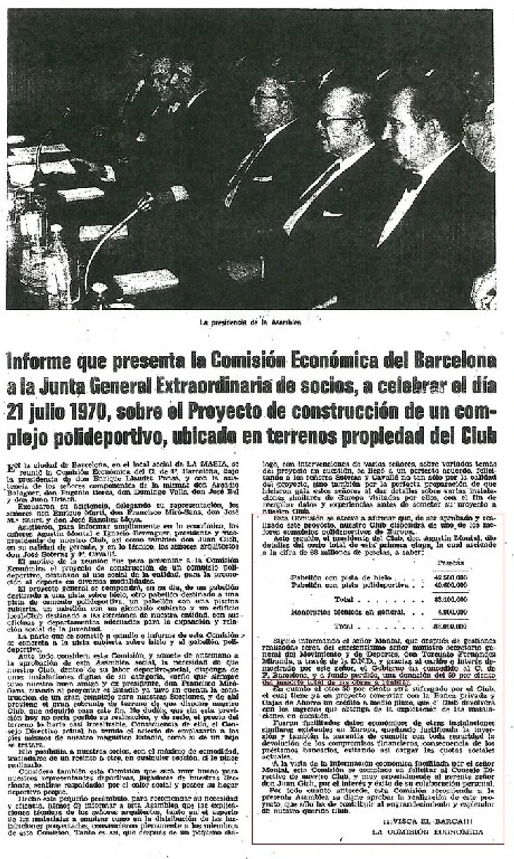 1970 — Правительство предоставляет «сине-гранатовым» безвозвратную субсидию в размере около 45 миллионов песет для спортивного комплекса.