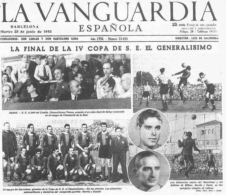 1942 — Каталонцы выигрывают свой первый Кубок Генералиссимуса («Барселона» – «Атлетик Бильбао» 4:3 в под. время).