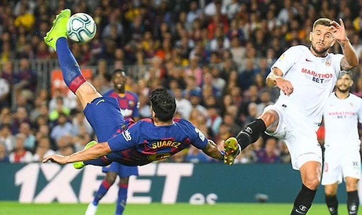 До этого момента Суарес много раз забивал за "Барсу" боковыми ножницами. Но гол ударом через себя впервые состоялся в апреле 2017-го в матче Ла Лиги против "Севильи".