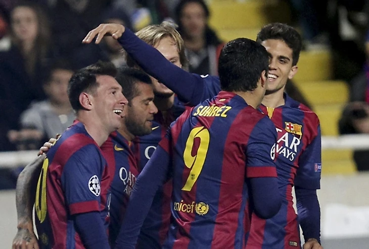 Из-за четырехмесячной дисквалификации уругваец не мог играть за каталонцев с самого начала сезона. Поэтому первый матч в составе "сине-гранатовых" состоялся лишь 25 октября 2014 года. Именно в этот день футбольный мир впервые увидел в деле атакующее латиноамериканское трио NSN. Это был выездной поединок на "Сантьяго Бернабеу"против мадридского "Реала", в котором Суарес отметился голевым пасом на Неймара уже на 4-й минуте встречи.