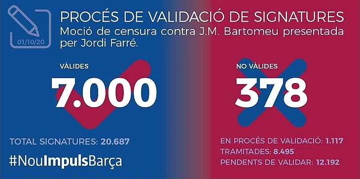 Из 7 378 подписей, проверенных Советом по вотуму руководству «Барселоны» за 3 дня, лишь 378 признаны недействительными