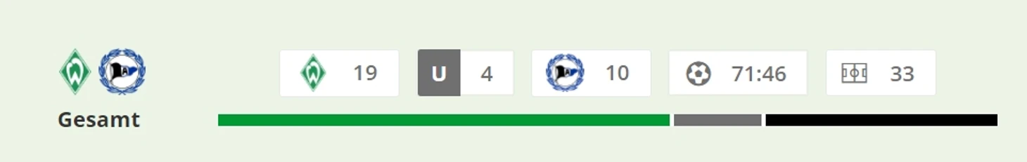 Скорострельность Фюлькруга: Никлас Фюлькруг, в последнем матче с «Шальке» оформивший хет-трик, из-за травм с момента перехода в «Вердер» летом 2019 года провел всего лишь 497 минут в Бундеслиге и забил семь голов. В среднем он забивал в ворота соперника каждую 71 минуту. «Арминия» же до сих пор не проигрывала в этом календарном году (2020).