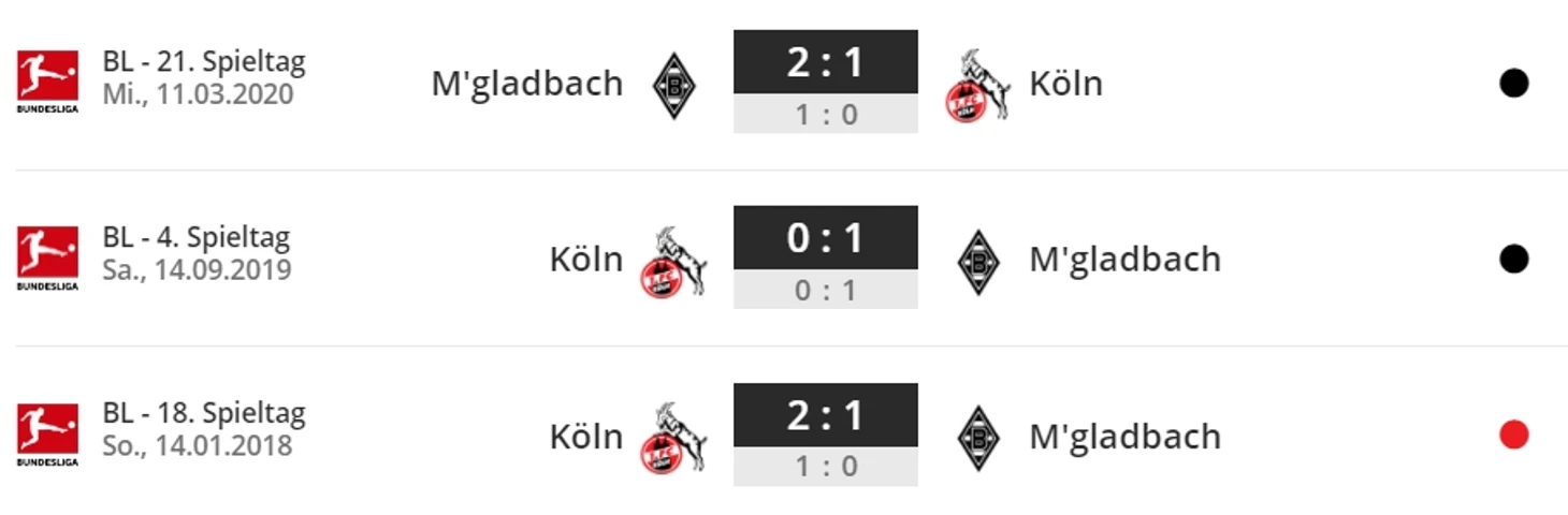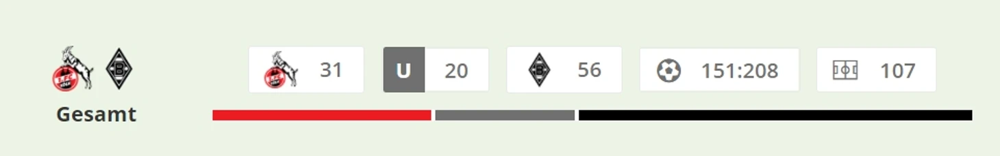 «Гладбах» любит дерби: за всю свою историю Бундеслиги «Мёнхенгладбах» не выигрывал ни у одного другого клуба так часто, как у «Кёльна» (50 раз), и забивал больше всего голов именно этому клубу (177). Кроме того, десять из последних четырнадцати Рейнских дерби в Бундеслиге завершились победой «жеребят».