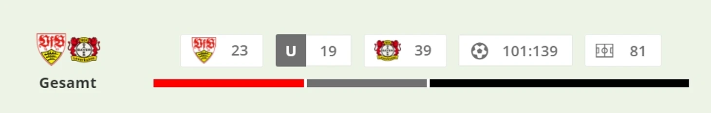 История говорит за «Байер»: «Леверкузен» не выигрывал ни у одной другой команды так часто в истории Бундеслиги, как против «Штутгарта» (36 раз) – из последних 16 встреч в рамках Бундеслиги проиграна только одна (12 побед, три ничьи).