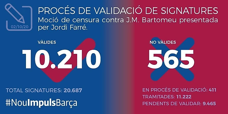 Из 10 775 подписей, проверенных Советом по вотуму руководству «Барселоны» за 4 дня, лишь 565 признаны недействительными