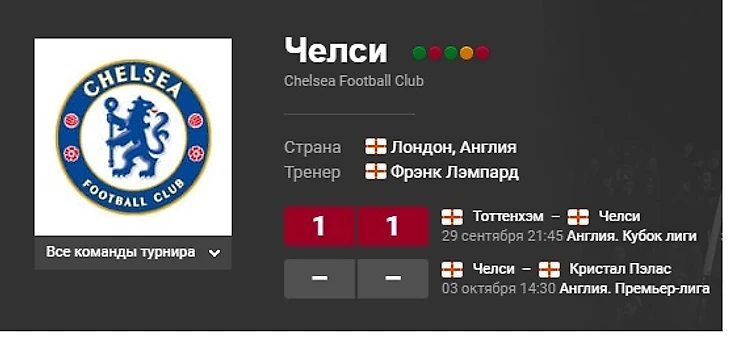 Такие, в которых кружочки рядом с названием моей команды - зелёные.
