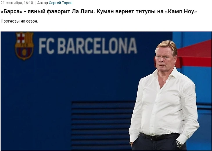 Еще до старта чемпионата Испании я опубликовал текст, в котором объяснял, что при Рональде Кумане «Барселона» будет «машиной» и в первый же сезон уверенно выиграет Ла Лигу.