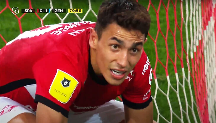 Еще при счете 0:1 «Спартак» упустил невероятный шанс: москвичи могли забить «Зениту» ответный после углового, но Понсе... ох.
