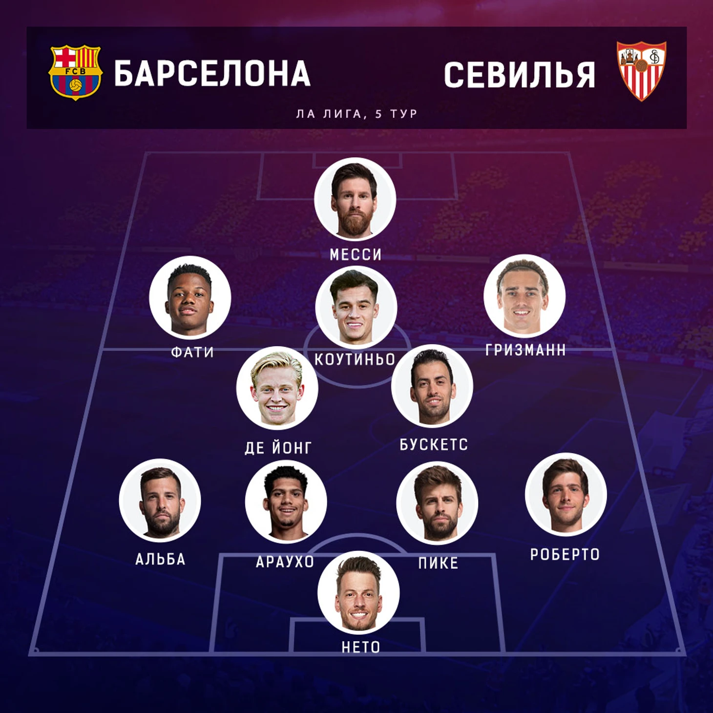 №1: Месси — впереди. Фати — слева, Гризман — справа, Коутиньо — десятка.