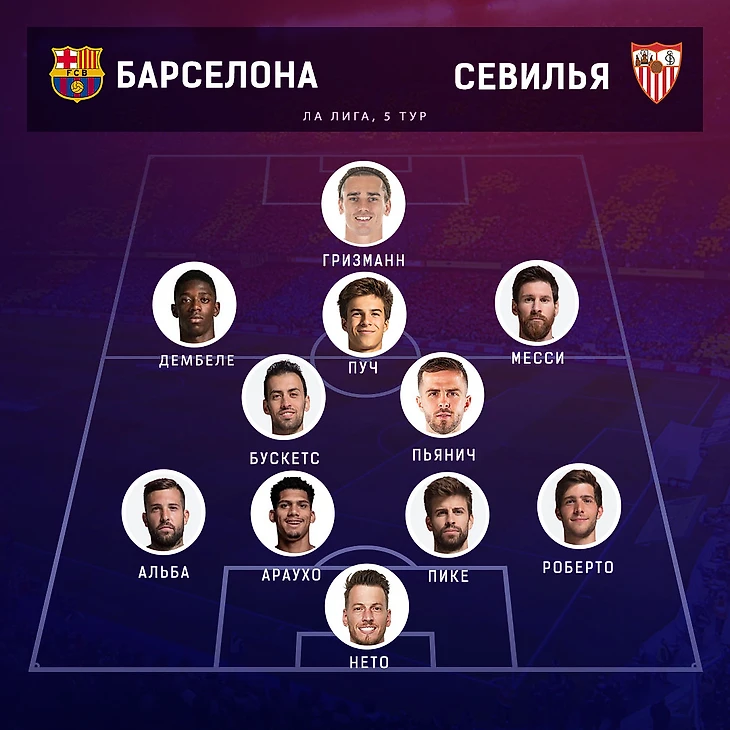 Привет! Завтра «Барселона» продолжит свой путь в новом сезоне Ла Лиги и сыграет на «Камп Ноу» с «Севильей»! Роналд Куман не сможет выпустить Лангле, так как он отбывает дисквалификацию после двух желтых карточек. Давайте же выберем один из вариантов состава на матч по схеме Роналда — 4-2-3-1.