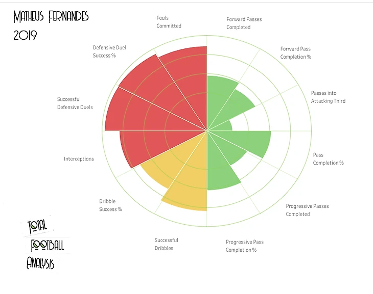 Но, при этом, функции самого опорника были более ограниченными, т.к. он не был главным разыгрывающим в своих клубах, чаще занимаясь чисткой. Бразилец показывал весьма хорошие оборонительные навыки, в особенности, игру при отборах (4.4 в среднем за игру). У него также наблюдался высокий процент выигранных дуэлей при игре в обороне (65%), что являлось отличным показателем на фоне статистически среднего опорника в чемпионате Бразилии. Тем не менее, многими местными специалистами отмечалось, что у Матеуса имеются проблемы с позиционированием и видением поля в данных ситуациях, в результате чего часто он оставлял слишком много пространства для соперников.