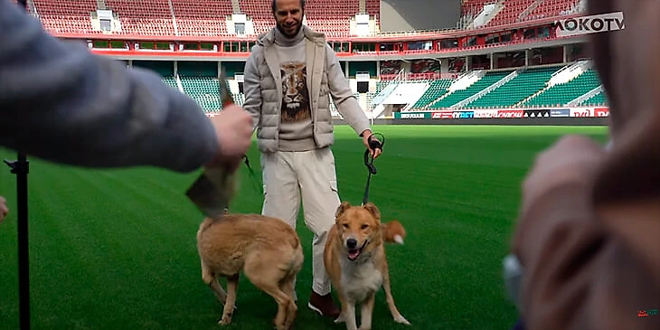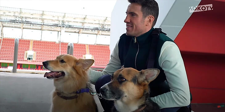 Приятнейшая акция «Локо» в честь Дня защиты животных: Смолов гладил котенка, Дроздов объявлял составы, собака Гильерме метила поле