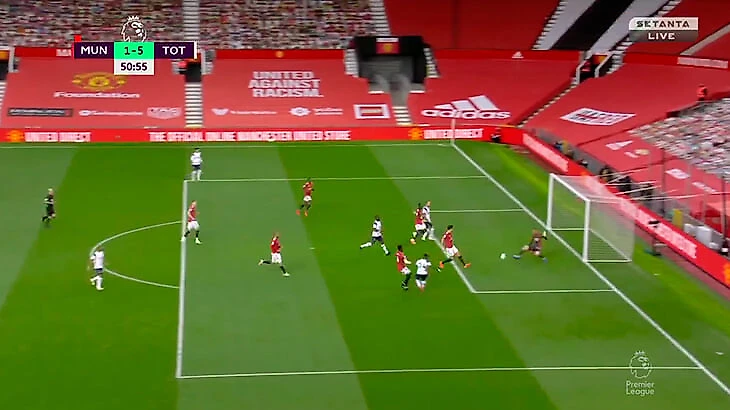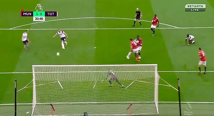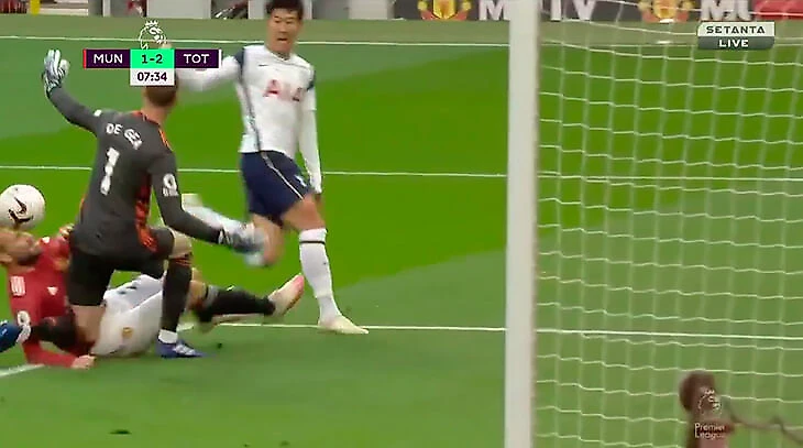 Оставшись вдесятером, «Юнайтед» совсем развалился и впервые в своей истории пропустил четыре до перерыва: от Кейна и снова Сона.
