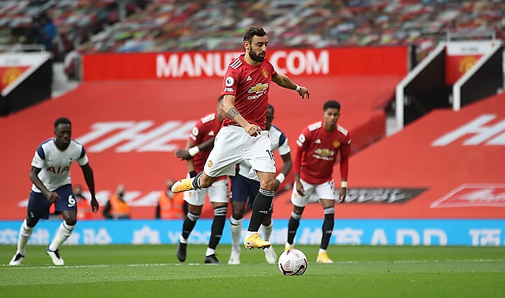 Кажется, коллеги не успели даже озвучить составы, когда Марсьяля свалили в штрафной, и «МЮ» получил право на один из самых быстрых пенальти в истории АПЛ (27-я секунда). Бруну изящно потоптался у мяча и несильно пробил мимо Льориса.