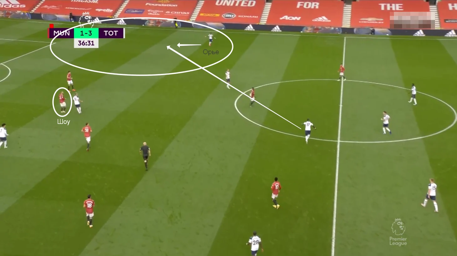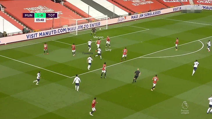Из-за того, что Шоу бросил свой фланг, его подстраховывать Магуаер, и вместо того, что сыграть на позиции Магуаера, он тоже побежал на этот фланг. В итоге центр остался пустым, Ламела и Сон остались одними, и передача пошла на Сона, он и забил четвертый гол Тоттенхэма.