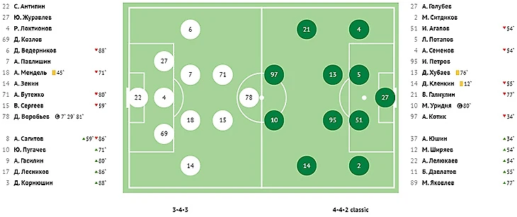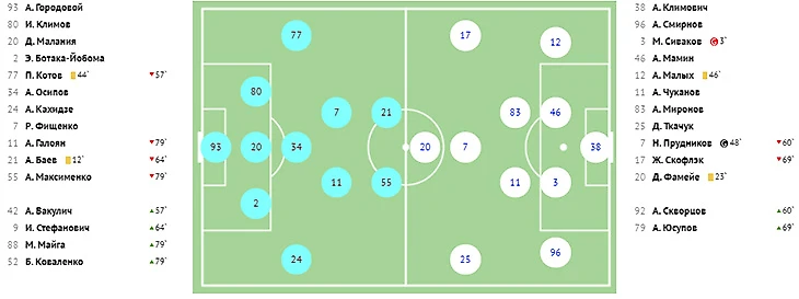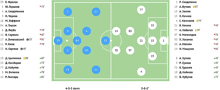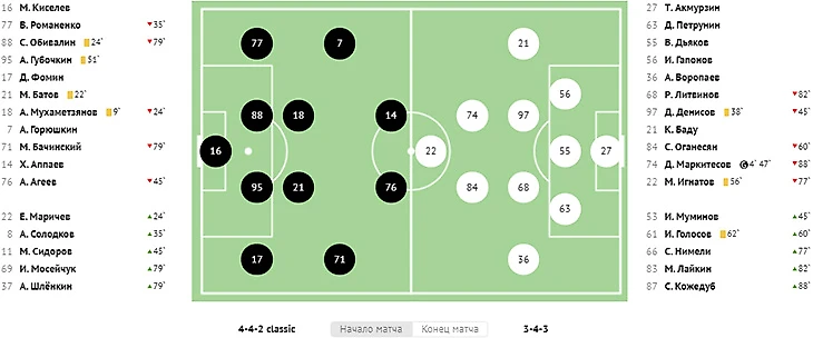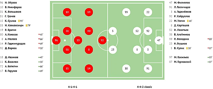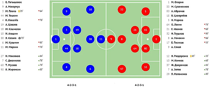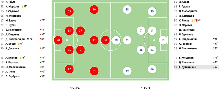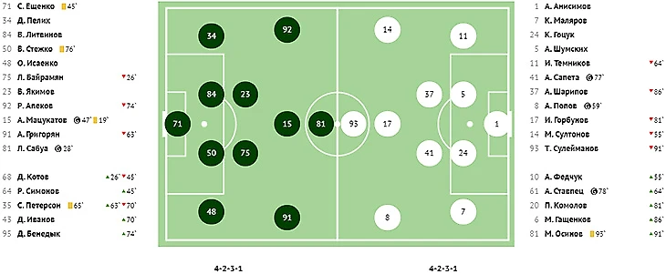Во втором тайме хозяева реализовали игровое и численное преимущество, забив красивый мяч в ворота Абаева. На 73-й минуте классно убрал на замахе двух защитников в опорной зоне Квеквескири и в противоход голкиперу сильным ударом направил мяч под самую штангу.