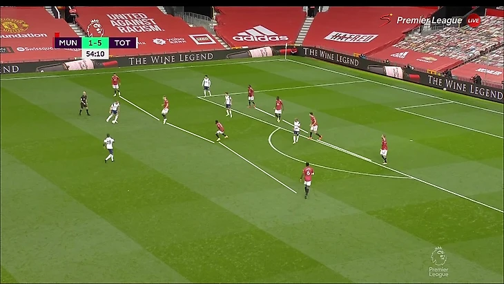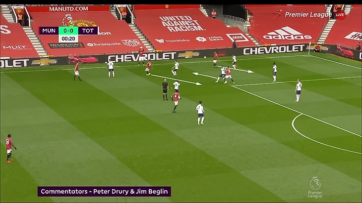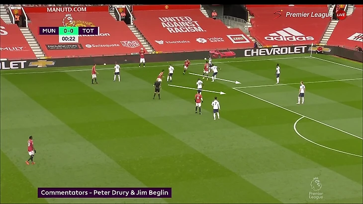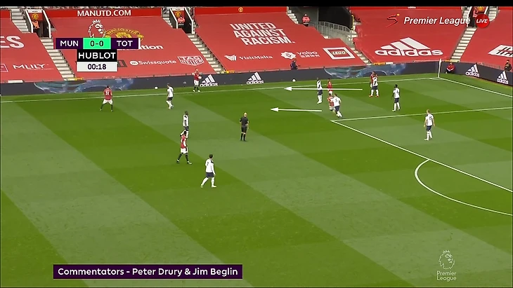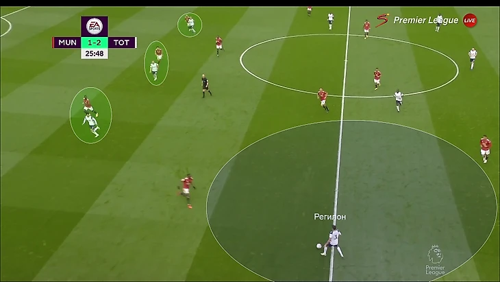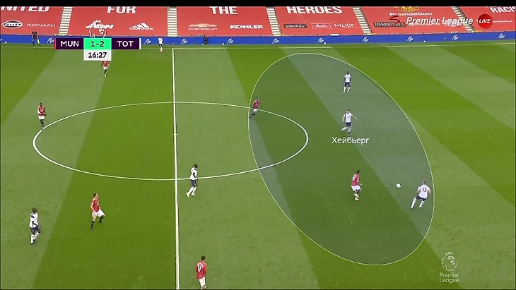 «Тоттенхэм» блестяще ориентировался в сценариях и знал, как лучше наказывать в каждом из них. Если фланг свободен, продвигаться коротко через него. Если его страхуют, играть прямым дальним пасом (так как в последней линии «МЮ» не хватает игроков). Иногда это умножалось на ошибки соперника (непонимание, как именно прессинговать и когда лучше выдвигаться).