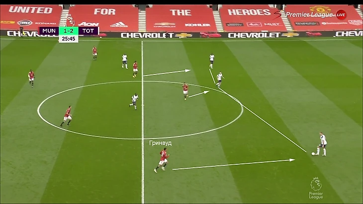 После пары передач «Тоттенхэму» удается выманить в прессинг Гринвуда: