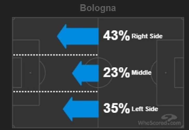 Ниже скрин, который подтверждает намерения « Болоньи» с перегрузом одной зоны и подачей на дальнюю: