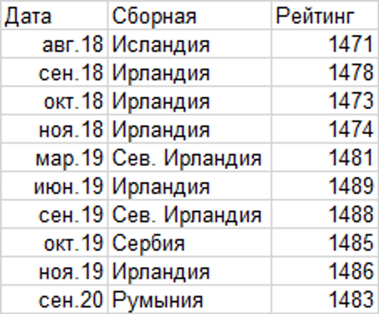 Динамика 20 строчки в рейтинге ФИФА в зоне УЕФА: