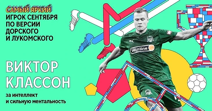 Второй раз подряд ваш и наш выбор совпадает: в августе вы проголосовали за Николу Влашича, а мы отметили Константина Кучаева – теперь оба героя из «Краснодара». Наши тактические авторы Александр Дорский и Вадим Лукомский выбрали полузащитника «Краснодара» Виктора Классона. Они тоже руководствуются не только голами и ассистами, а в первую очередь влиянием на игру команды в целом и умными передвижениями: полезно лишний раз проговорить, что один из ключей к качеству – своевременные рывки, взрывные ускорения, благодаря которым часто и создаются ключевые голевые моменты.