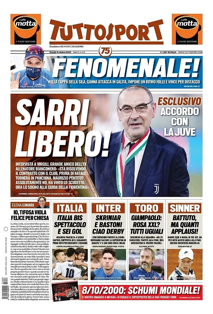 Эксклюзив, соглашение с «Юве». Интервью с Вирджили, хорошим другом бывшего тренера Бьянконери: «Он расторг контракт с клубом. Перед Рождеством он вернётся к работе. Маурицио раскаялся? Абсолютно нет, он выиграл Скудетто. Теперь он мечтает возглавить «Фиорентину».