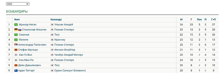 Перенесемся из Европы на другой континент - в Азию. Нападающий с двойным гражданством (Германия и Россия) второй год играет на полях Южной Кореи и второй сезон получается для него по результативным действиям наиболее успешным, за 23 игры он забил 15 голов и отдал 5 результативных передач. Он является вторым бомбардиром Южно Корейской Высшей Лиги.