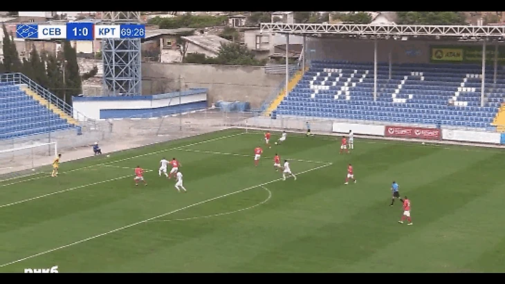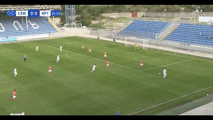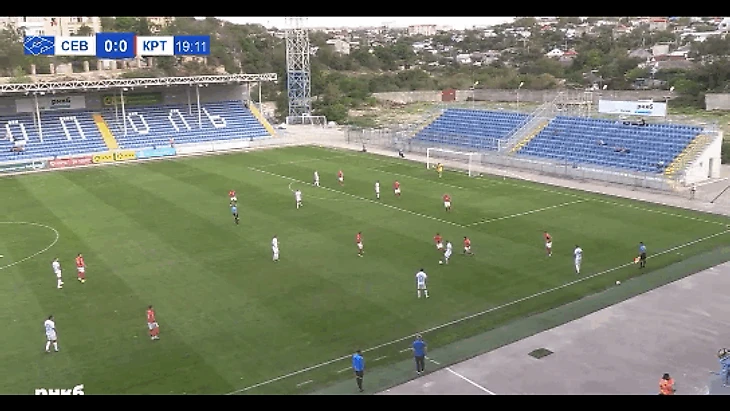 Кэп керчан ( Гогичиашвили Б. ) все еще работает на удаленке. Без него не клеилась атака, и океанцы не спешат возвращаться в защиту. Контра Евпатории (1-0)