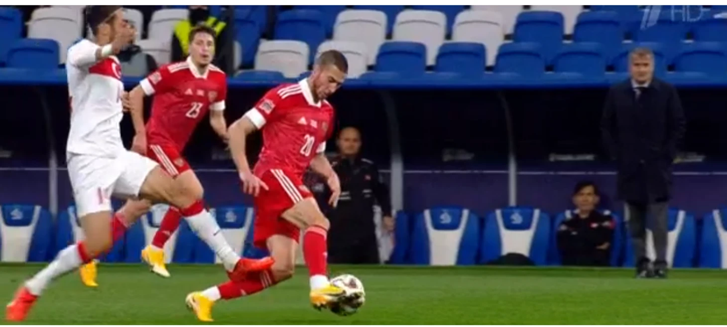 В матче между командой сборной России и командой сборной Турции произошел момент, где Махмут Текдемир нарушил правила на Алексее Ионове.