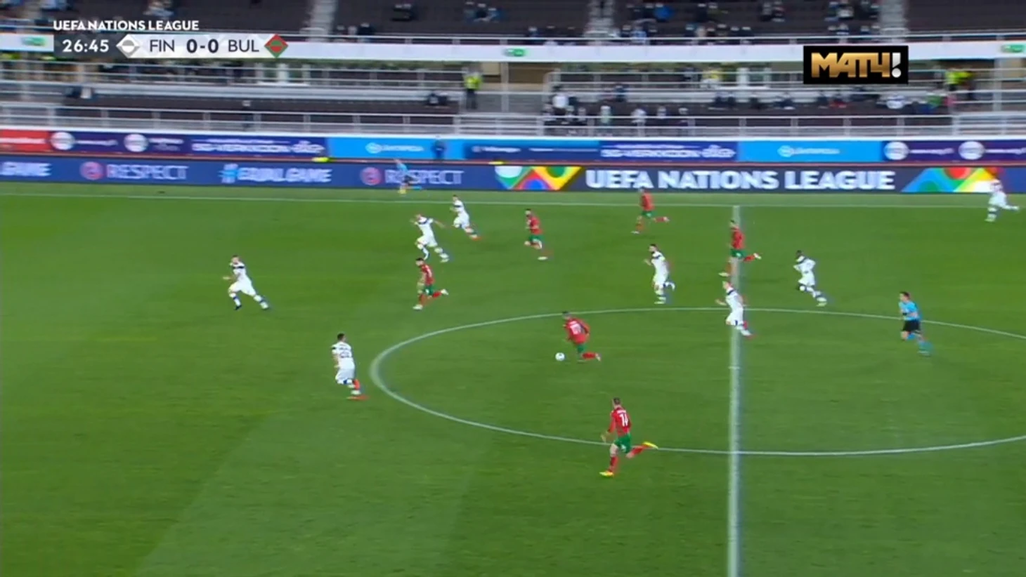 Про первый тайм надо закончить попаданием в руку болгарскому игроку на 31-й минуте. Касание было. Почему не поставили пенальти? Неизвестно.