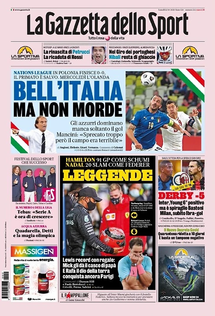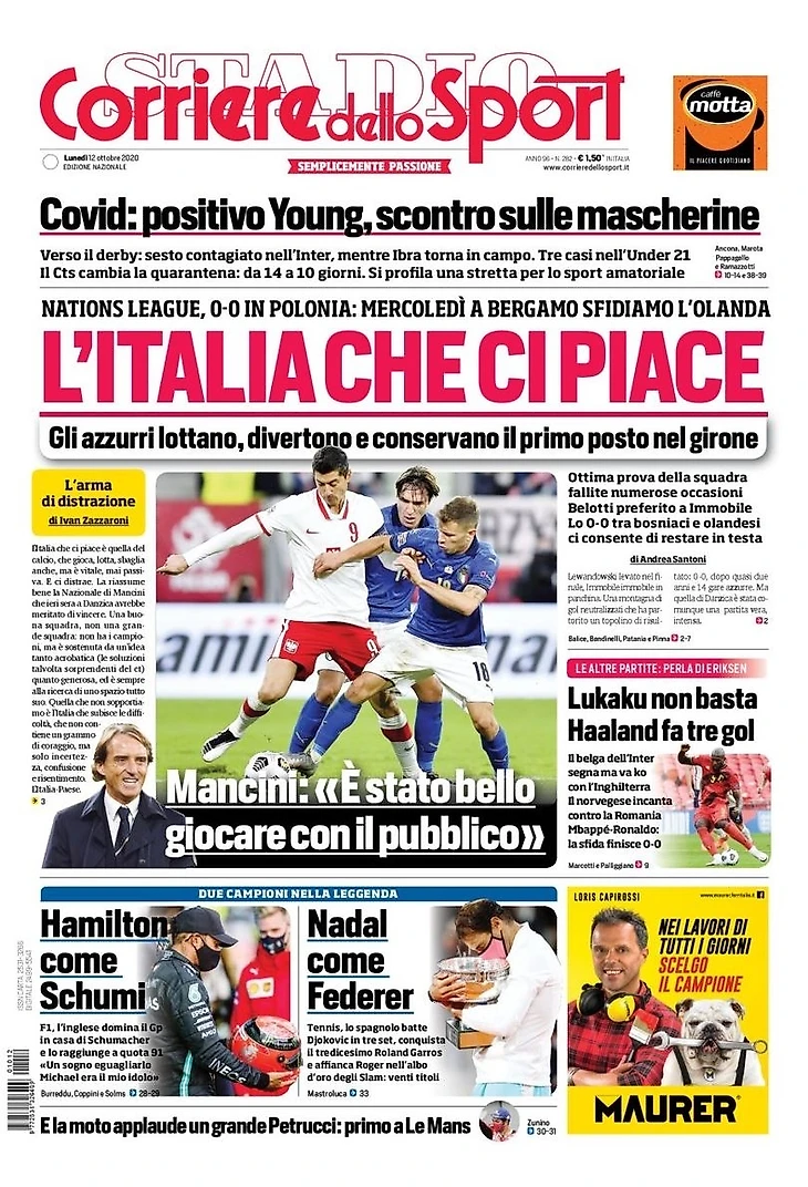 Нулевая ничья Италии с Польшей в Лиге Наций, ещё один заражённый в «Интере» и выздоровевший Ибра – в утреннем обзоре заголовков итальянских спортивных изданий в блоге «В гостях у Кальчо».