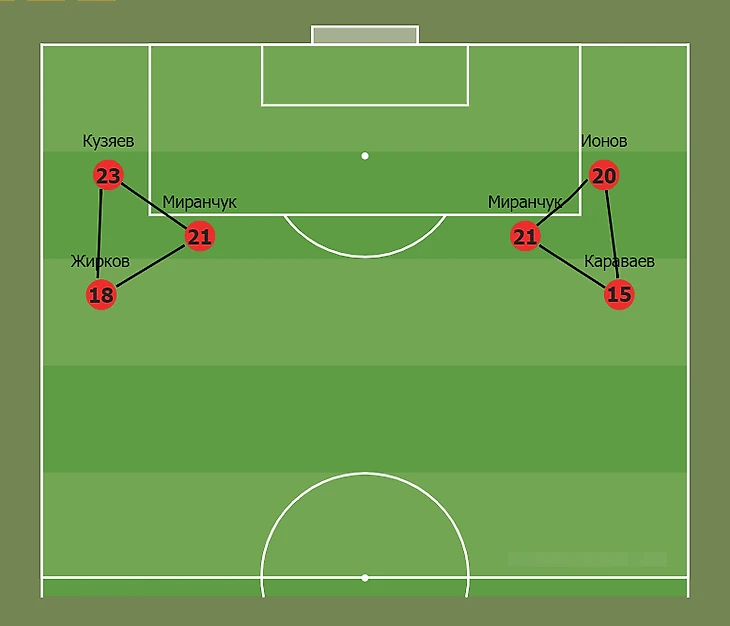 Одними из самых активных игроков в сборной России были Миранчук и Жирков. Через Антона мяч шел во время большого количества атак России, а через Жиркова во время атак левым флангом.