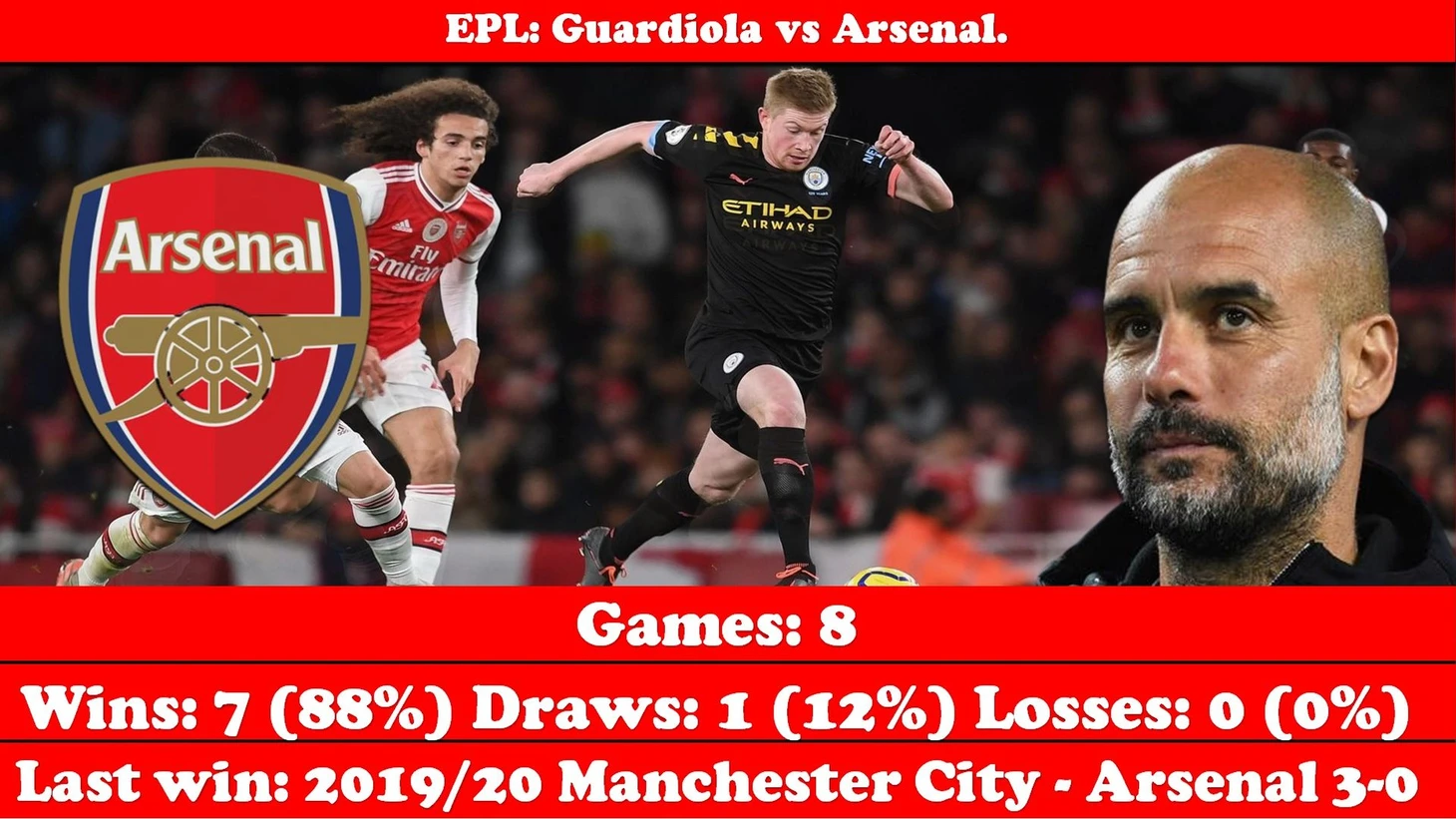 Статистика Пепа против Арсенала в рамках АПЛ впечатляет. Семь побед, одна ничья и ноль поражений.