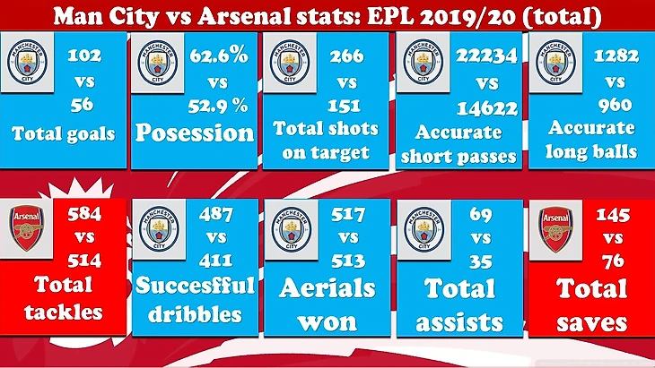 В сезоне 2019/20 Арсенал превзошел Сити только по количеству сэйвов и количеству отборов.