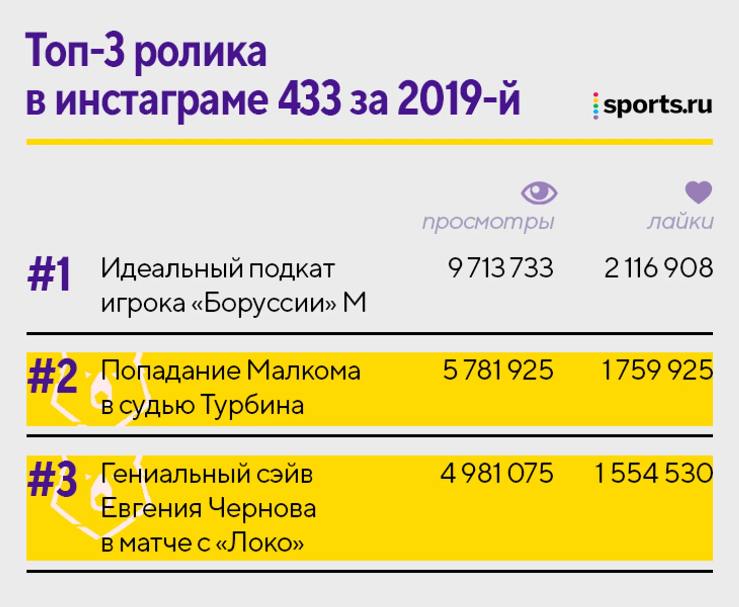 А для зарубежной аудитории 433 – вообще один из основных источников контента об РПЛ, потому что на общедоступном телевидении в мире российской лиги сейчас практически нет. Очень мал шанс, что пользователи за пределами России увидят в 433 что-то, что уже видели.