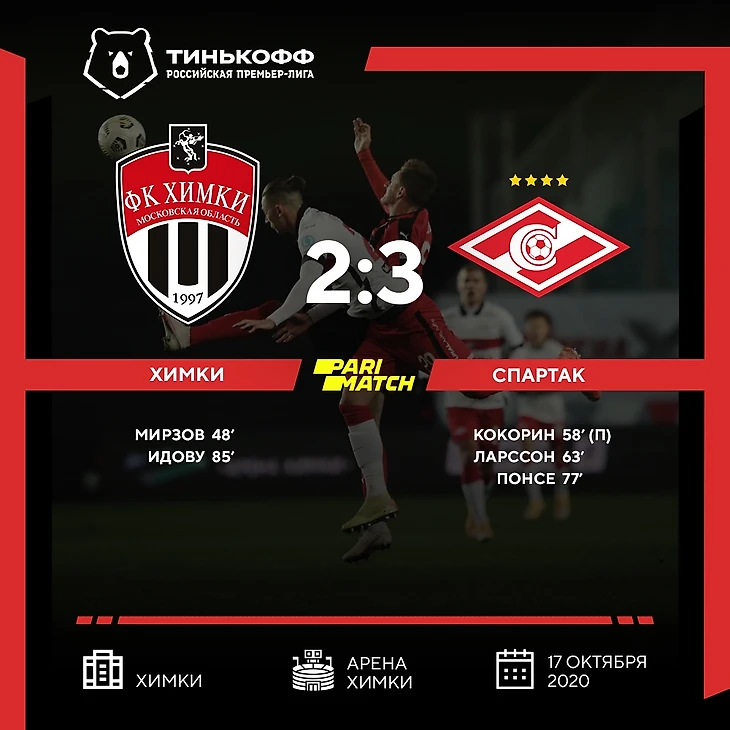 Любопытная история. Эти команды встречались между собой не так часто, а вот по три гола в матче забивали не раз. Сейчас это сделал «Спартак», хотя голы дались ему, как и победа в целом, очень нелегко. Да и в принципе играли на этот раз спартаковцы как-то непривычно вяло для нынешнего сезона. Особенно в первом тайме, когда преимущество «Химок», по-моему, где-то даже удивленному таким поведением гостей, было очень заметно. Посидели в обороне, перехватили мяч, убежали, а там только Максименко и спасает. Примитивный и очень опасный для «Спартака» сценарий игры, пожалуй, самый худший из тех, что представили красно-белые на вкус своим болельщикам в этом чемпионате. Главный тренер «Спартака» Доменико Тедеско прокомментировал итог матча так: «Мы владели мячом в первом тайме, но было много потерь, играли горизонтально, нападающие были под давлением и передачи шли им в ногу. «Химки» глубоко оборонялись, контратаковали, забей они по такой игре в первом тайме – ничего не сказал бы, оставалось бы только это принять. Во втором тайме стало больше вертикальной игры, хорошо поджимали и оказывали давлении на оборону, что необходимо при такой игре соперника в защите. Такая игра принесла результат – заработали пенальти, потом забили ещё два мяча... Хороший знак, что перевернули игру с 0:1».