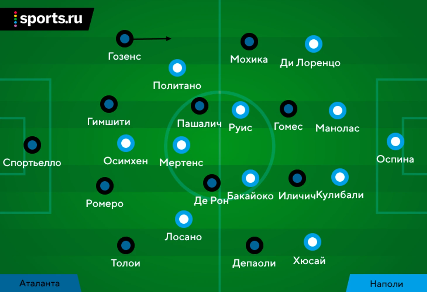«Наполи» был готов и к сценарию, в котором Гозенс и Депаоли выдвигаются на крайних защитников. Выдвижение означает, что центральные защитники «Аталанты» остаются без подстраховки. В таком сценарии Оспина играл дальним пасом на Осимхена.