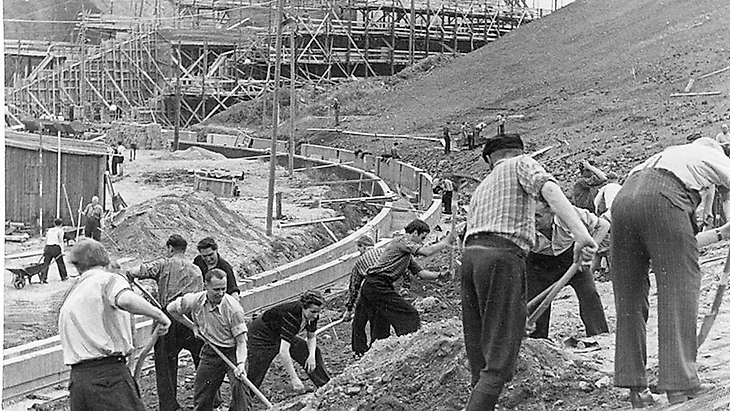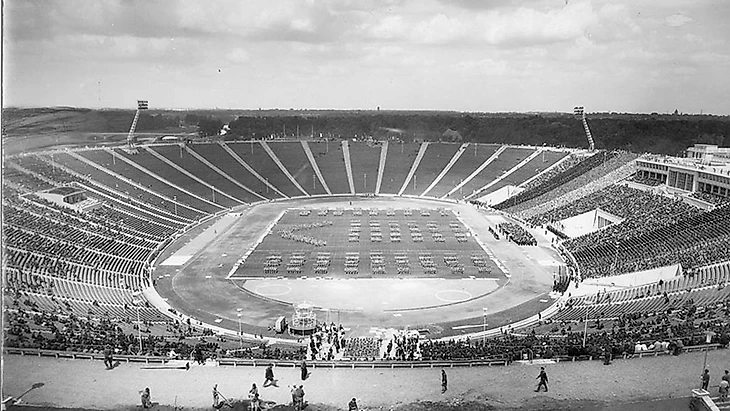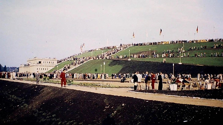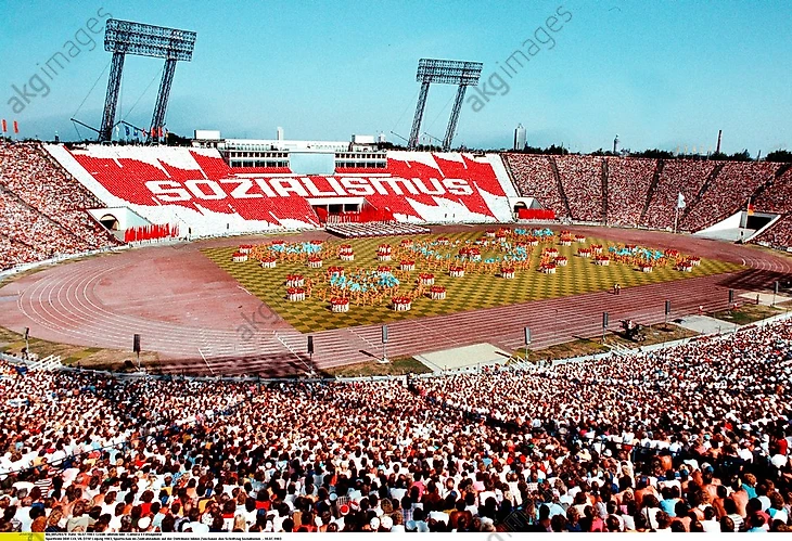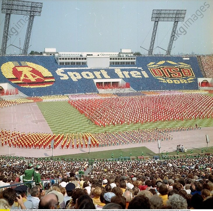 История стадиона начинается с 1955 года, когда он был возведен на месте плаца для парадов, проводимых нацистами в 30-40 года прошлого столетия. Строительство началось 15 апреля 1955 года, в соответствии с планами архитектора Карла Сурадного. Вы удивитесь, но столь большой объект был построен всего за год: в июле 1956 года стадион был завершен.