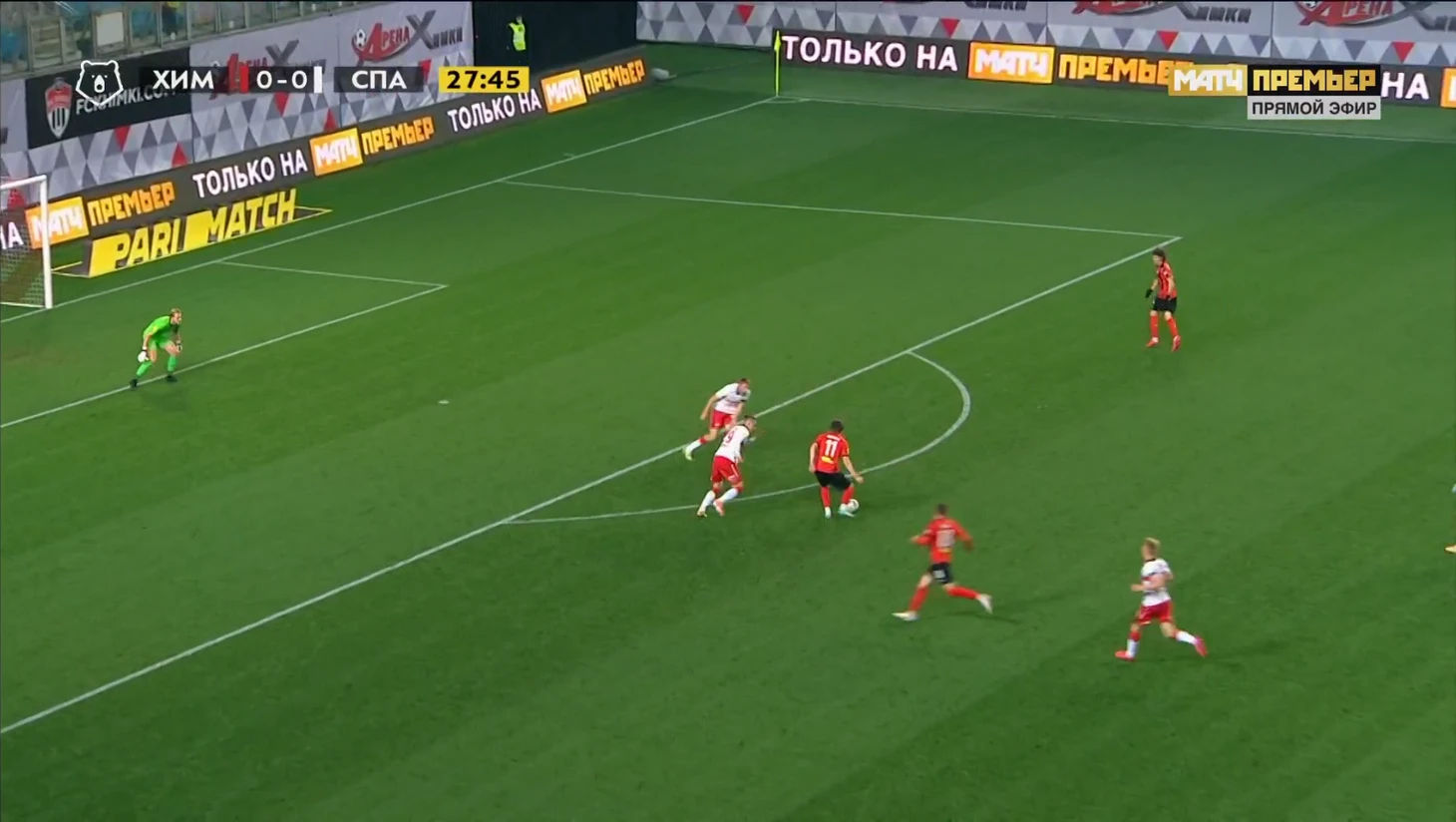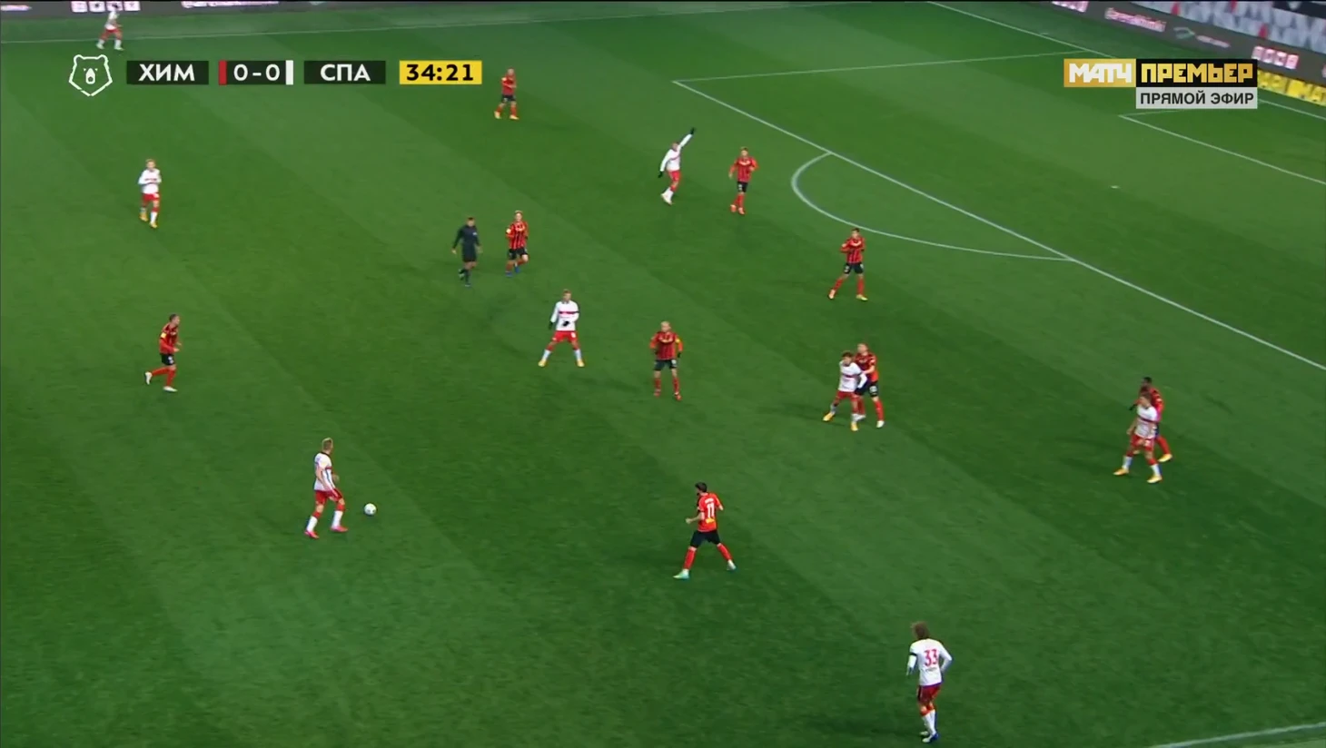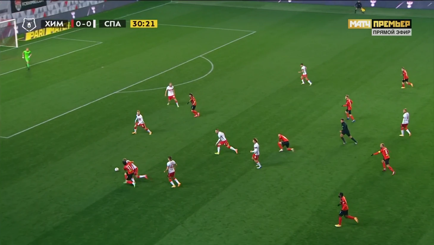 После назначения на пост подмосковной команды бывшего тренера "Локомотива" и тульского "Арсенала" Игоря Черевченко, команда начала показывать достойный конкурентный футбол - и дебютная победа над "Динамо", и достойный матч с "Локомотивом" могут возрождать надежды болельщикам "Химок" на сохранение прописки в РПЛ по окончании сезона. Порой, такие вспышки обусловлены эмоциональным подъемом команды, но, думаю, что это не тот случай - Черевченко квалифицированный тренер, и его футбол не похож на "типичную" игру слабой команды против сильной - "Химки" играя 3 матча против богатых московских команд здорово прессинговали, много били(больше 10 ударов за матч, со "Спартаком" - внушительные 22 удара), смело использовали атакующие возможности схемы 5-4-1. Но, что еще больше меня удивило - "Химки" решили "отзеркалить" 3-4-2-1 у Спартака! Ход, конечно, понятен - не терять зоны и игроков красно-белых, но игра в 3 защитника все равно предполагает сильные исполнительские навыки, и Черевченко смог донести свои идеи в этом матче. Добавляли помощи Мирзов и Глушаков, чей настрой на игру не подлежал сомнению. Резуан вообще здорово играет против "Спартака" - в последних трех играх против красно-белых, Мирзов забил уже 3 гола и отдал 1 голевую передачу.