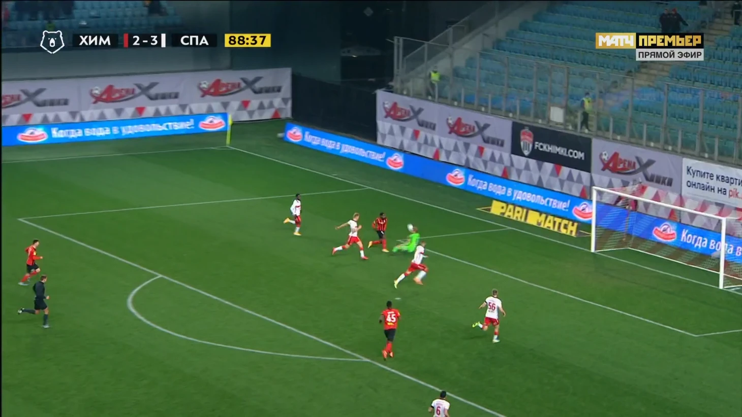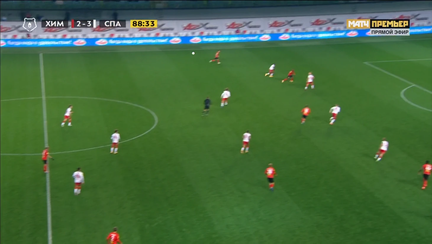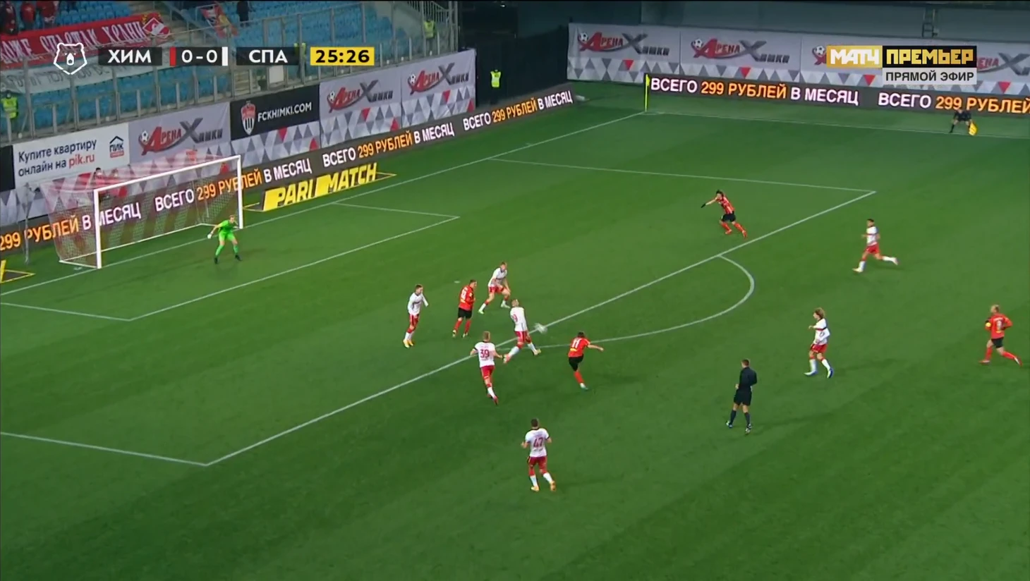 После назначения на пост подмосковной команды бывшего тренера "Локомотива" и тульского "Арсенала" Игоря Черевченко, команда начала показывать достойный конкурентный футбол - и дебютная победа над "Динамо", и достойный матч с "Локомотивом" могут возрождать надежды болельщикам "Химок" на сохранение прописки в РПЛ по окончании сезона. Порой, такие вспышки обусловлены эмоциональным подъемом команды, но, думаю, что это не тот случай - Черевченко квалифицированный тренер, и его футбол не похож на "типичную" игру слабой команды против сильной - "Химки" играя 3 матча против богатых московских команд здорово прессинговали, много били(больше 10 ударов за матч, со "Спартаком" - внушительные 22 удара), смело использовали атакующие возможности схемы 5-4-1. Но, что еще больше меня удивило - "Химки" решили "отзеркалить" 3-4-2-1 у Спартака! Ход, конечно, понятен - не терять зоны и игроков красно-белых, но игра в 3 защитника все равно предполагает сильные исполнительские навыки, и Черевченко смог донести свои идеи в этом матче. Добавляли помощи Мирзов и Глушаков, чей настрой на игру не подлежал сомнению. Резуан вообще здорово играет против "Спартака" - в последних трех играх против красно-белых, Мирзов забил уже 3 гола и отдал 1 голевую передачу.