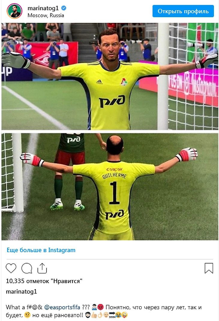 Но как же обстоят дела с менее статусными игроками и лигами? На днях, например, голкипер "Локомотива" и сборной России Маринато Гильерме в своем Instagram аккаунте возмутился внешностью своего прототипа в FIFA 21.