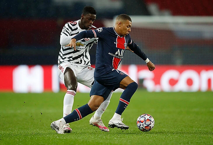 Аксель расположился справа в тройке центральных защитников (Сульшер довольно часто прибегает к этой схеме против топ-соперников). Это означало, что соседями Туанзебе по флангу будут Неймар и Килиан Мбаппе. Кошмарный вариант на случай, если вам надо вернуться в игру после долгого простоя – но физически мощный и быстрый Туанзебе справился.