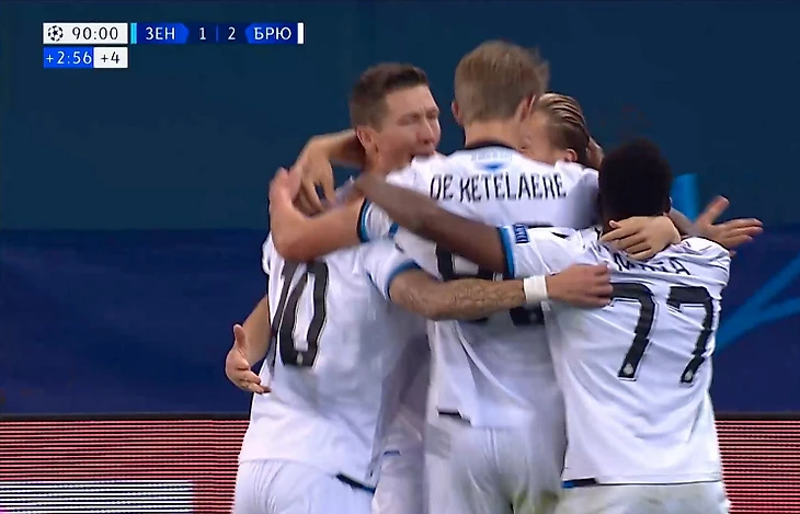 Бельгийцы всё заметнее уставали от предложенной ими самими же интенсивности. Казалось, чемпионы России сохранили, больше сил на концовку, но... 93я минута и гол забивает "Брюгге".