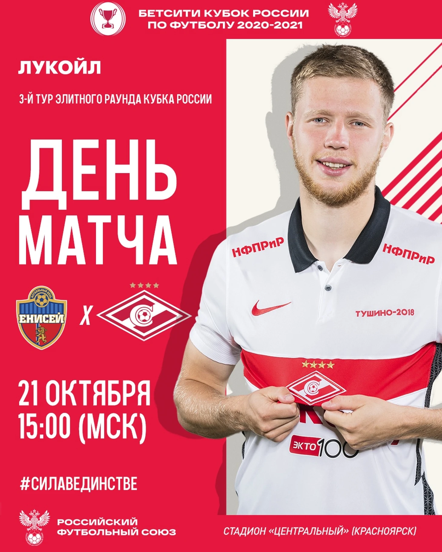 Стал известен состав красно-белых в гостевом матче элитного раунда Бетсити Кубка России против «Енисея».