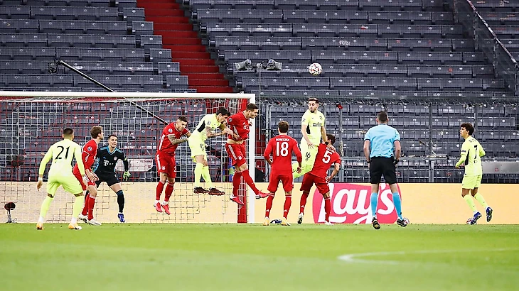 В 28 минут прозвучала команда «фас» от тренера, и «Бавария» пошла забивать. Автором первого гола в сезоне 2020-2021 Лиги чемпионов стал Коман. Благодаря вцепившемуся в мяч Киммиху, француз получил точный пас и метров с десяти заколотил гол в ворота Облака.