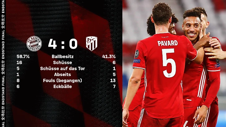 Дав отдышаться от 3:0, Коман отпраздновал дубль уже на 72-й минуте. Как и в предыдущем голе, сложно назвать ассистента, так как пас от Мюллера Кингсли получил на своей половине поля еще до центрального круга, а потом, устроив одиночный забег к чужим воротам и попутно обманув сразу трех защитников «Атлетико», мощным ударом отправил мяч в дальний угол.
