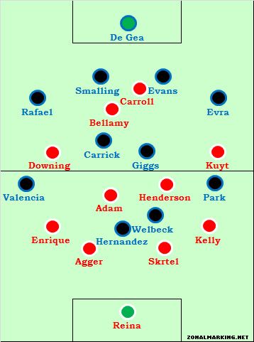 Тем не менее, изменения в полузащите не имеют прямого отношения к победному голу «красных». Пепе Рейна нашел дальний пасом Кэрролла, который скинул мяч завершившему атаку Кюйту. Эвра грубо ошибся с выбором позиции, но стоит также отметить, что Кэрролл сыграл ключевую роль в обоих голах. Это в свою очередь лишь подтверждает предположения, что Крис Смоллинг и Джонни Эванс, вероятно, сильнейшая на данный момент пара центральных защитников «Юнайтед», испытывает проблемы, когда им противостоит мощная классическая «девятка».