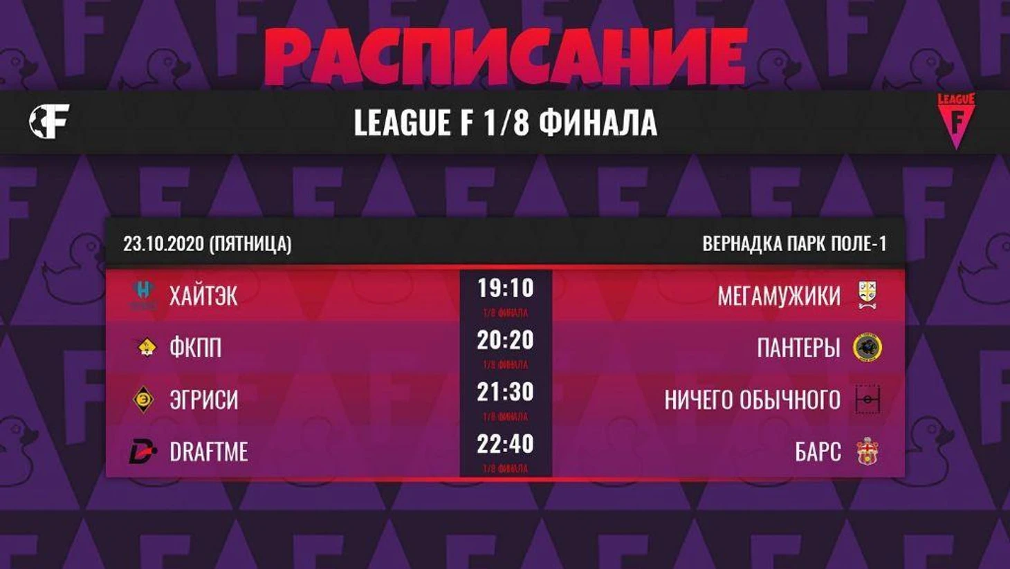 Расписание матчей 1/8 Лиги F на сегодня | Рассказываем о парах 1/8