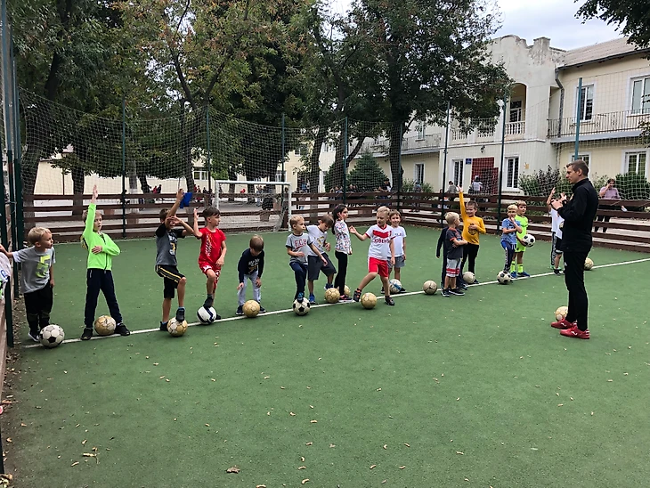 Обучение будет наиболее эффективным, если дети будут выполнять упражнения с мячом и без мяча не только в футбольной школе, но также дома и на улице, во дворе.