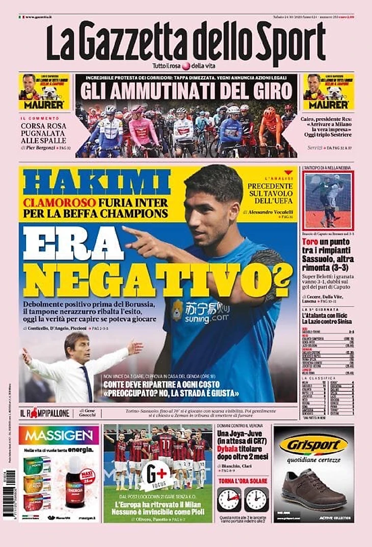 Хакими был здоров? Заголовки Gazzetta, TuttoSport и Corriere за 24 октября